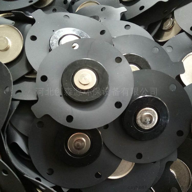 脉冲阀膜片是一种需要时常进行开启和关闭动作来控制空气流通的柔性机构,及要求有好的柔韧性,还要求有尽可能高的密封性,因此脉冲阀膜片的材料就直接关系到脉冲阀膜片的使用寿命和使用效果,换言之,脉冲阀膜片的好坏就直接影响脉冲袋式除尘器清灰系统的工作稳定性,也直接关系到除尘设备的使用成本,一般的脉冲阀膜片都有使用寿命或者动作次数的承诺,使用优质的脉冲阀膜片可以直接降低除尘设备的使用成本,由两面涂胶的单层或多层构成,也有橡胶不夹织物的。按其形状分制法膜压法。根据使用要求可以制造不同胶料,不同织物的膜片。膜片用的丁腈胶与聚硫胶的共混胶料的性能,夹帆布碟形膜片(常称隔膜)所用胶料的性能以及近年来发展的一些硅橡胶、氟橡胶、氯醇橡胶膜片性能